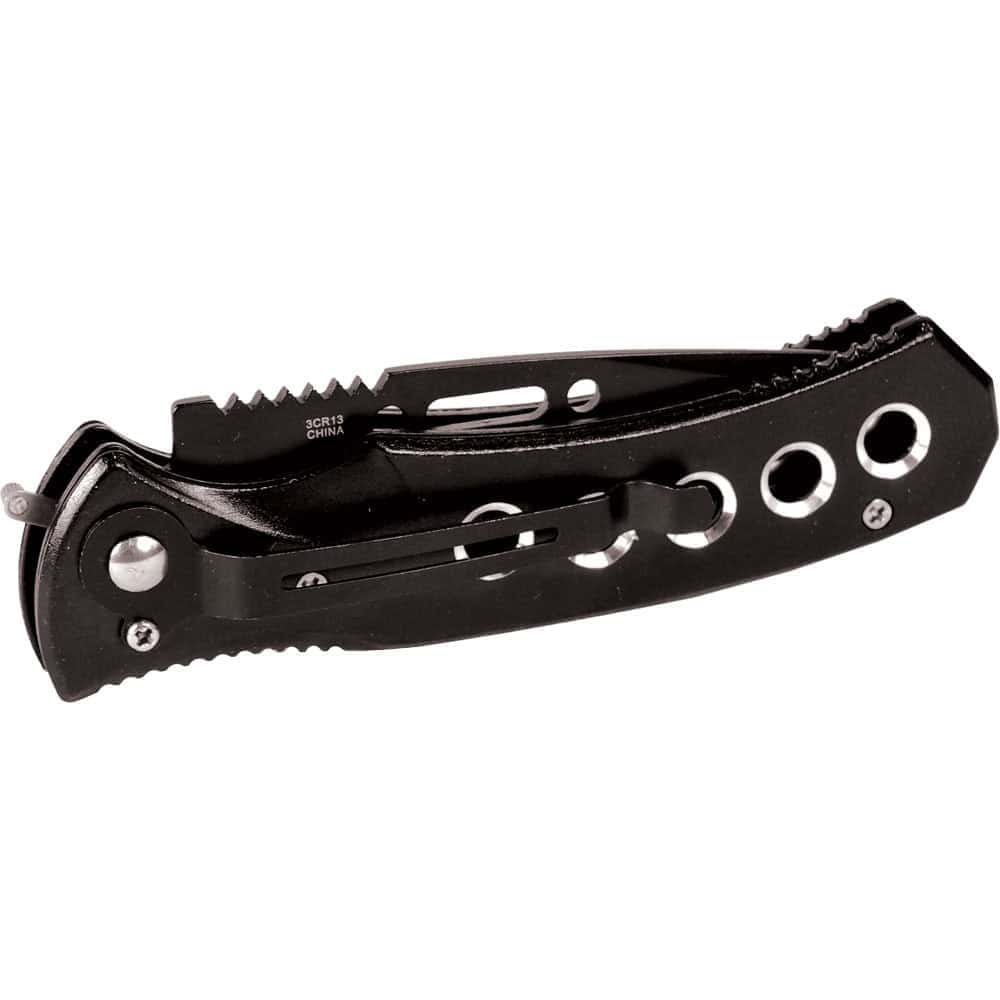 Automatic Heavy Duty Knife with 5 hole handle and safety lock. Black Color